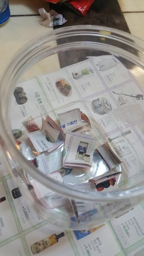 ㅋㅋㅋ 마침 백화점 쿠폰이 있어 종이 오리기보다는 쓰지도 못하는 쿠폰으로 추첨을 합니다.