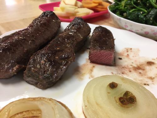 *진공저온요리, 75~40정도의 물에 진공포장한 고기을 한시간정도 서서히 익혀 외형 손상없이 육질을 서서히 부드럽게 개선할수 있음.스테이크는 익힌후 팬에 다시한번 요리해도 맛남^^