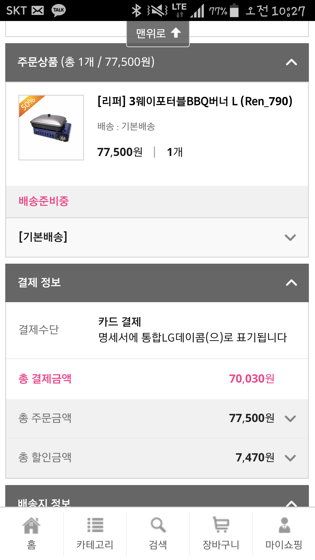 첫구매쿠폰도 줘서 싸게 산듯 합니다..