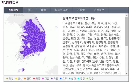 이정도면 폭염특보 아닌곳을 발표하는게 더 낫겠네요ㅡ.,ㅡ;;
