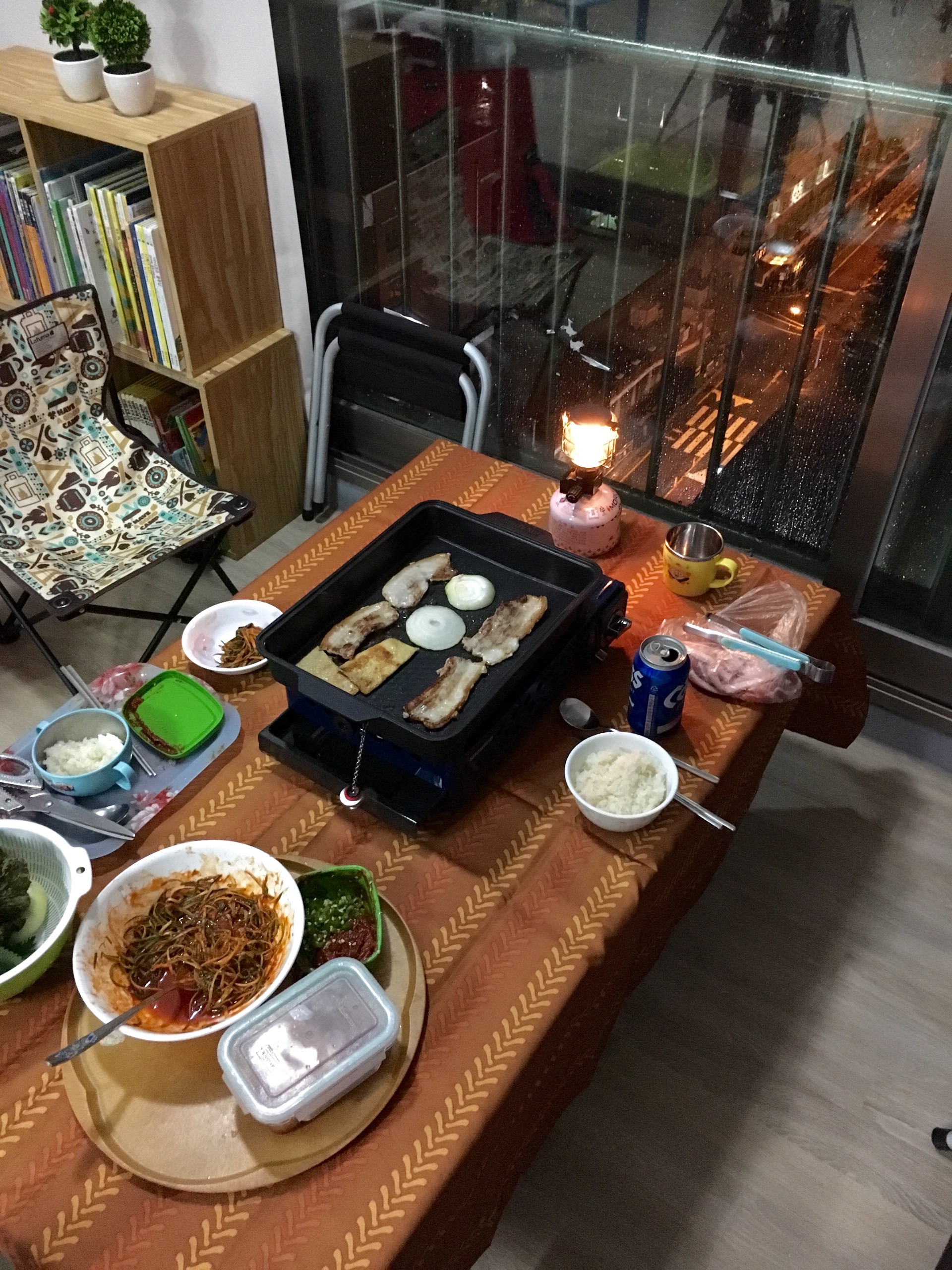 그냥저냥 기분이나 낼겸~~지난번에 구입한 스노라인구바도 개시할겸~~ 또 베란다캠중이네요ㅡㅡ