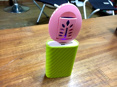 캠핑가방에서 두개를 꺼내서 충전기와 보조배터리에 하나씩 끼워봅니당.