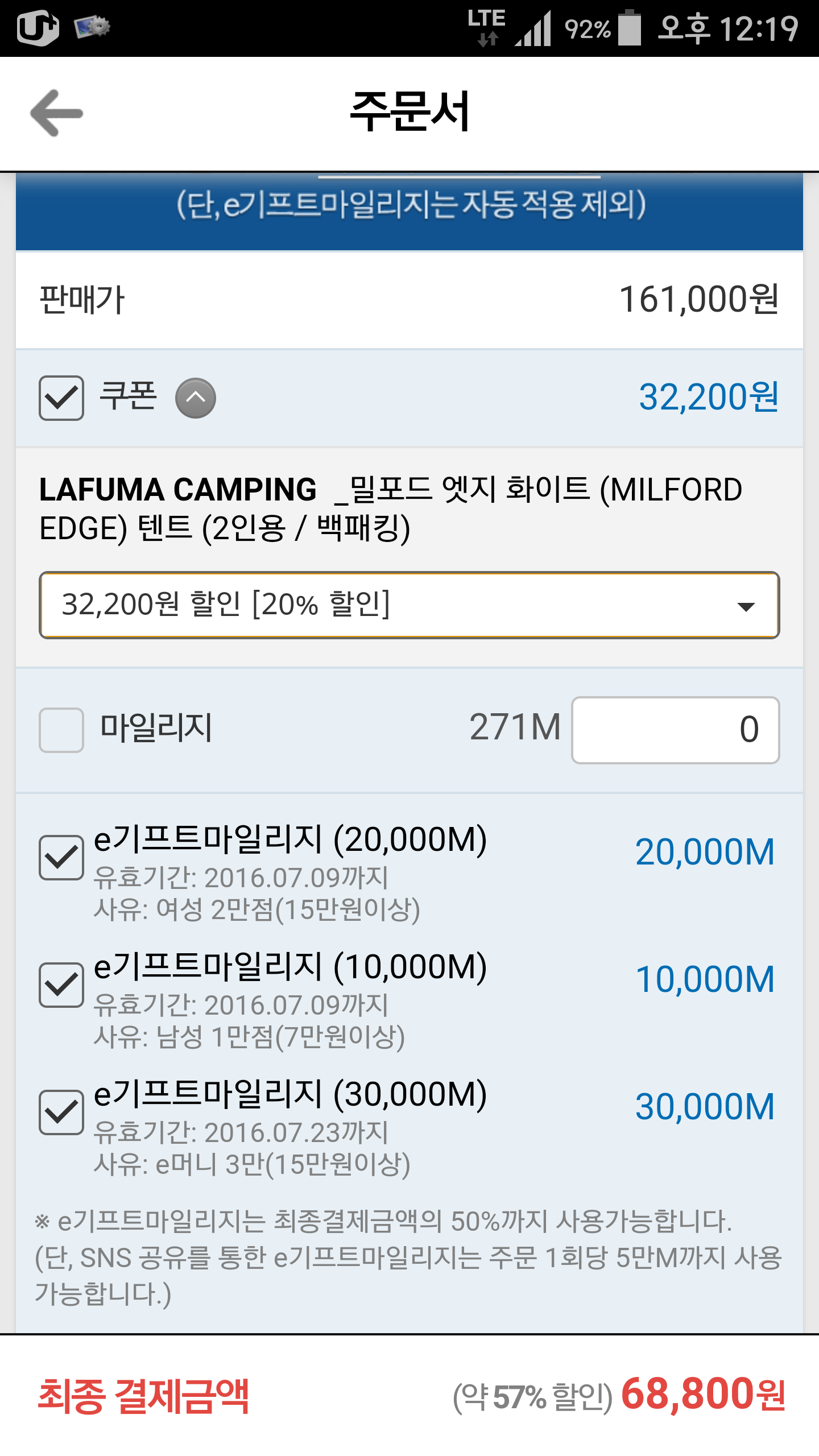 와...6만원대까지 나오는군요. 저한테 왜 엘에프는 마일리지를 안주는걸까요 ㅠㅠ | ||