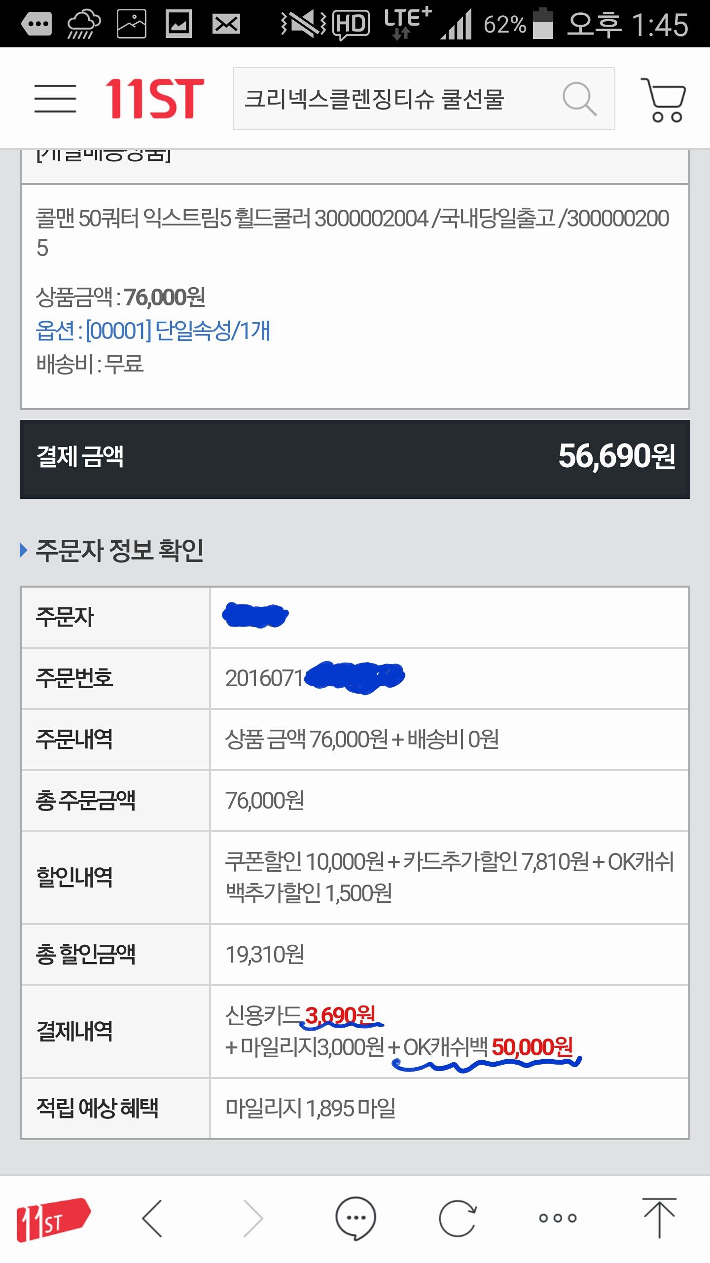 색상은 어떤거 하셨나요? 저 살땐 다 품절이라 파란색으로...ㅠ 까만색이 참 멋있던데요....ㅋㅋㅋㅋ