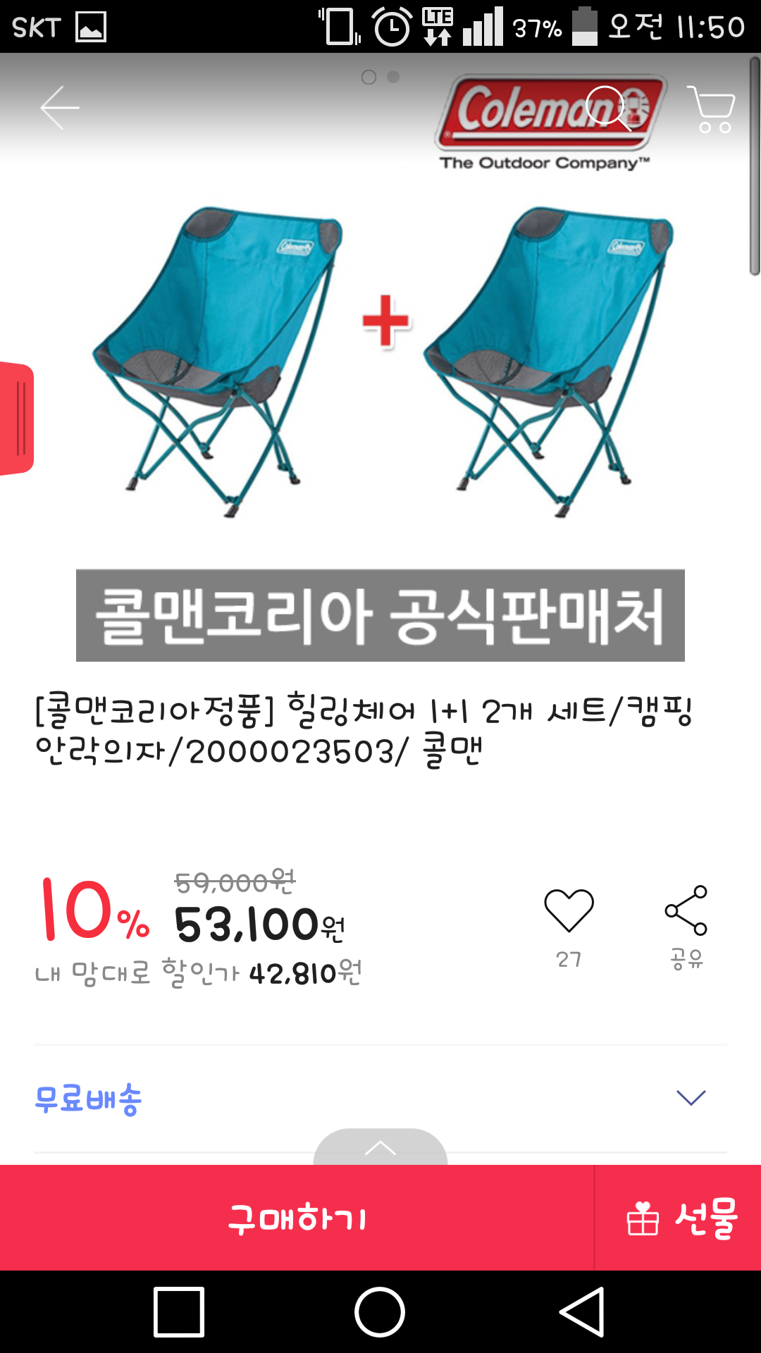 ㅡㅡㅎ 오케이몰에 "콜맨 릴렉스" 검색하셔서 디럭스 릴렉스체어나 (41000원) 이지릴렉스체어 (42800원) 한번보세요..