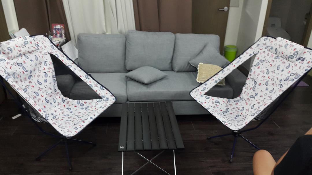 화사하니 이쁘네요. 실제 앉아 봤는데 넓고 괜찮아 보였어요. 셋팅하고 베란다에서 괴기라도 구워드세용 ㅋ |