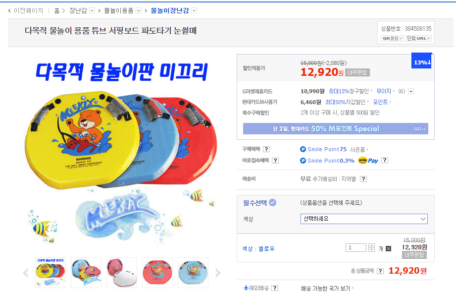 물놀이 용품을 준비하고 있는중 아래 두가지를 눈여겨 보고 있습니다.