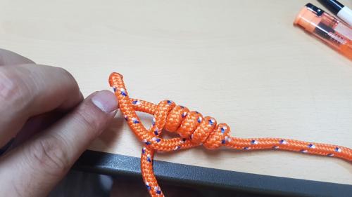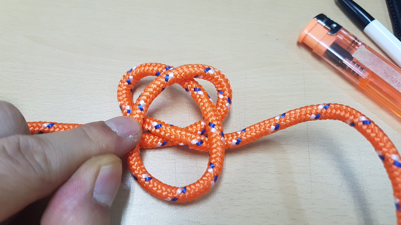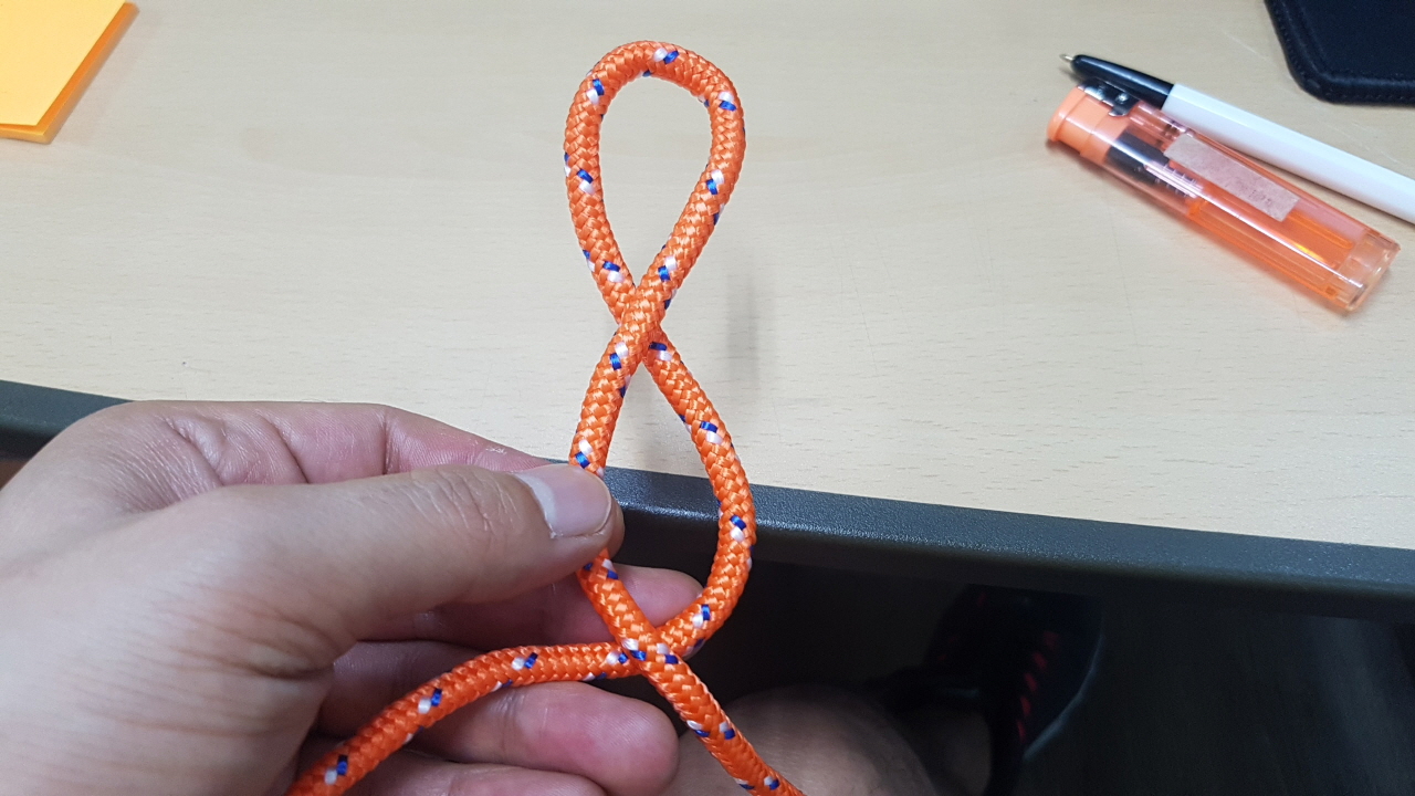 매듭을 묶는 법은 8자 모양을 만들어서 맨 윗부분을
