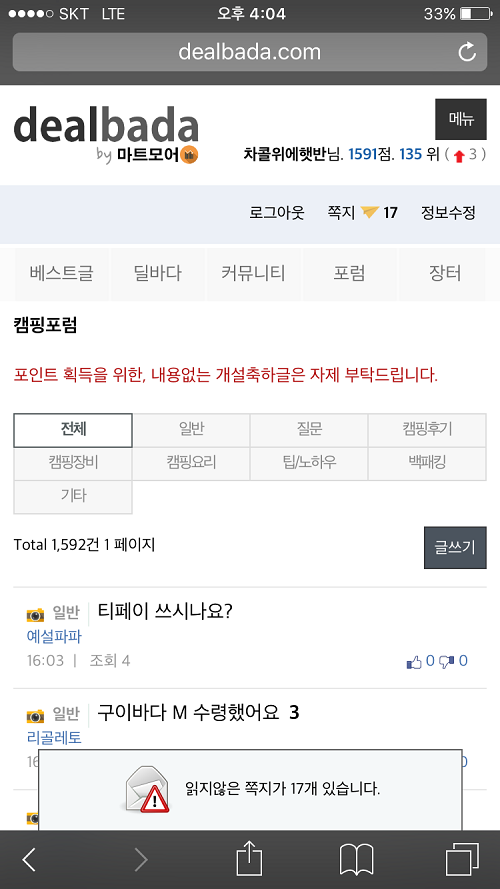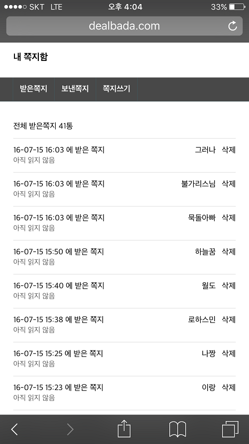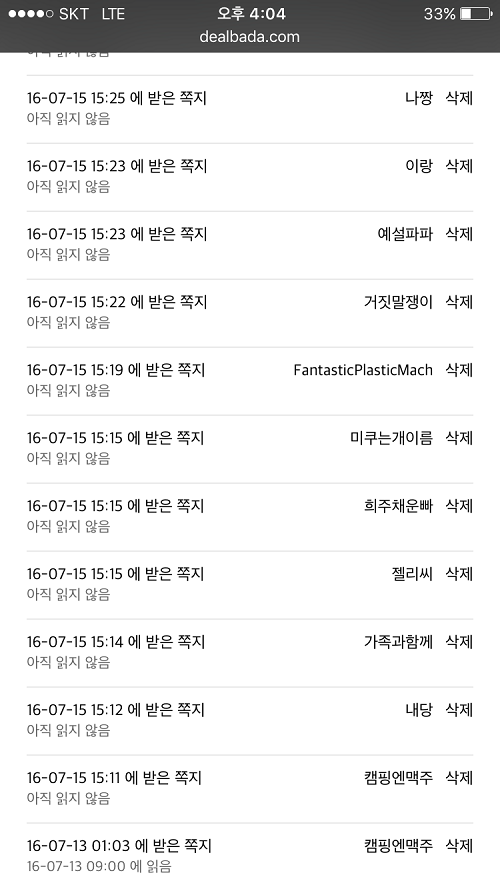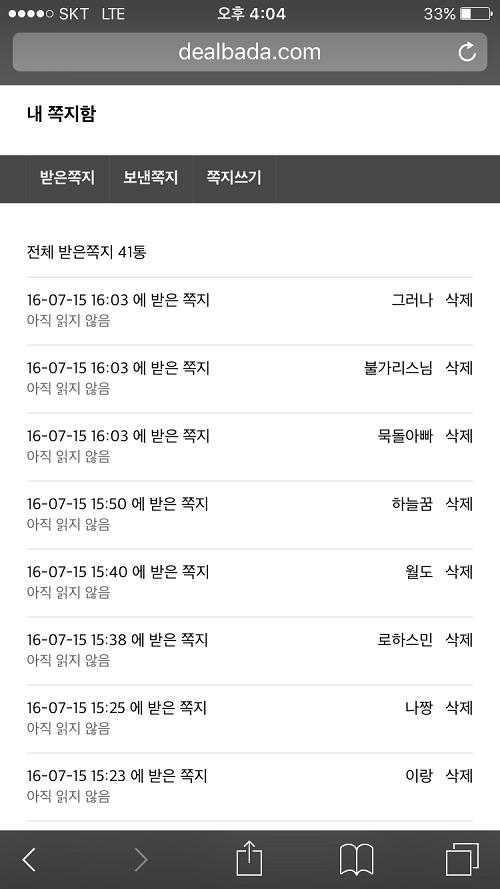 다른분들의 쪽지는 카운트에만 반영하고 읽지 않고 삭제 하겠습니다^^