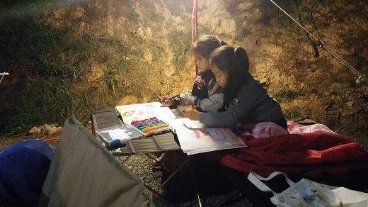 사진에 저희 두 딸이 앉은게 콜맨 미니체어...아랫쪽 노란티셔츠 옆집오빠가 앉은게 라푸마 미니체어입니다^^