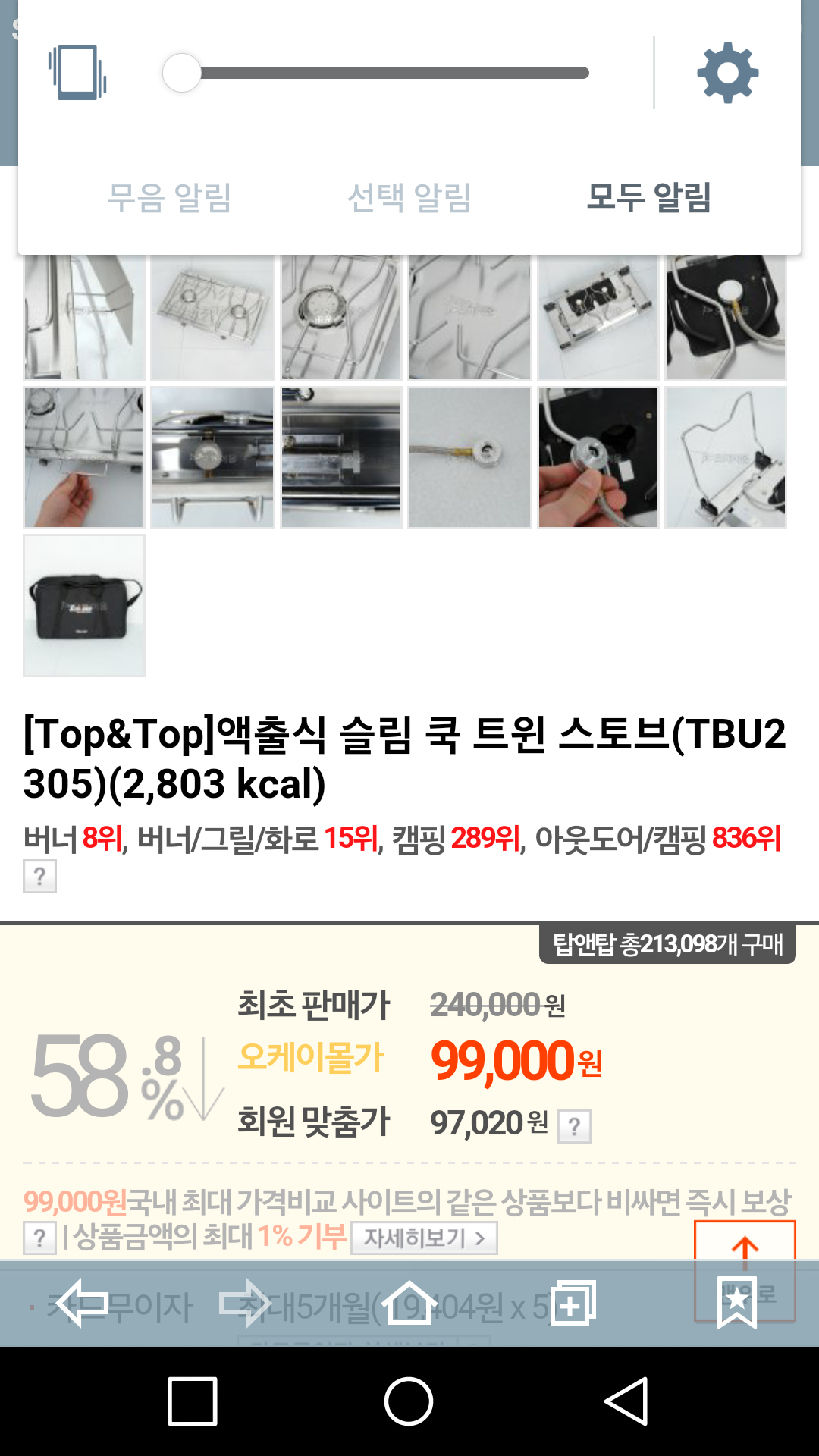 탑앤탑 액출 트윈버너 99000원
