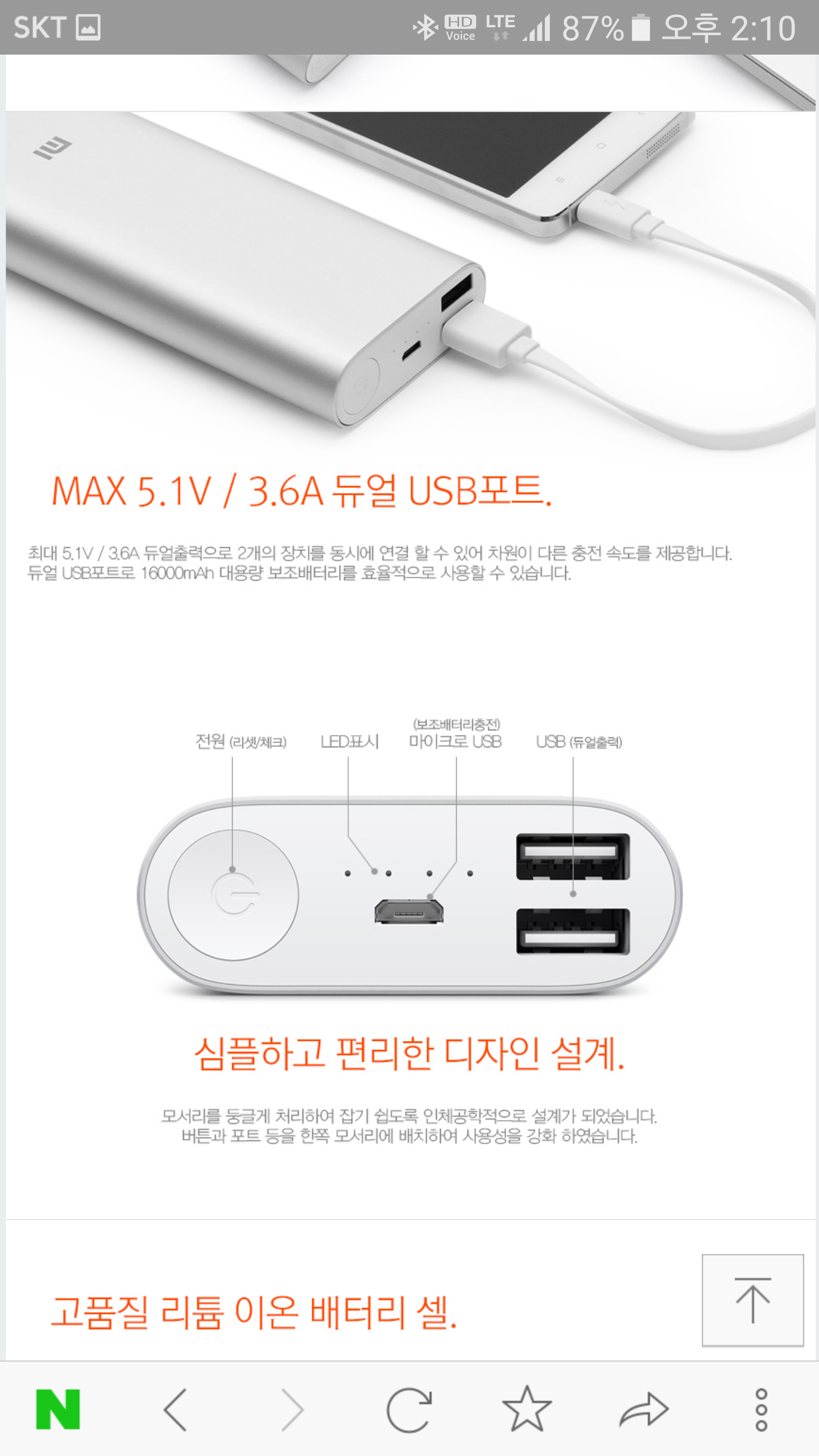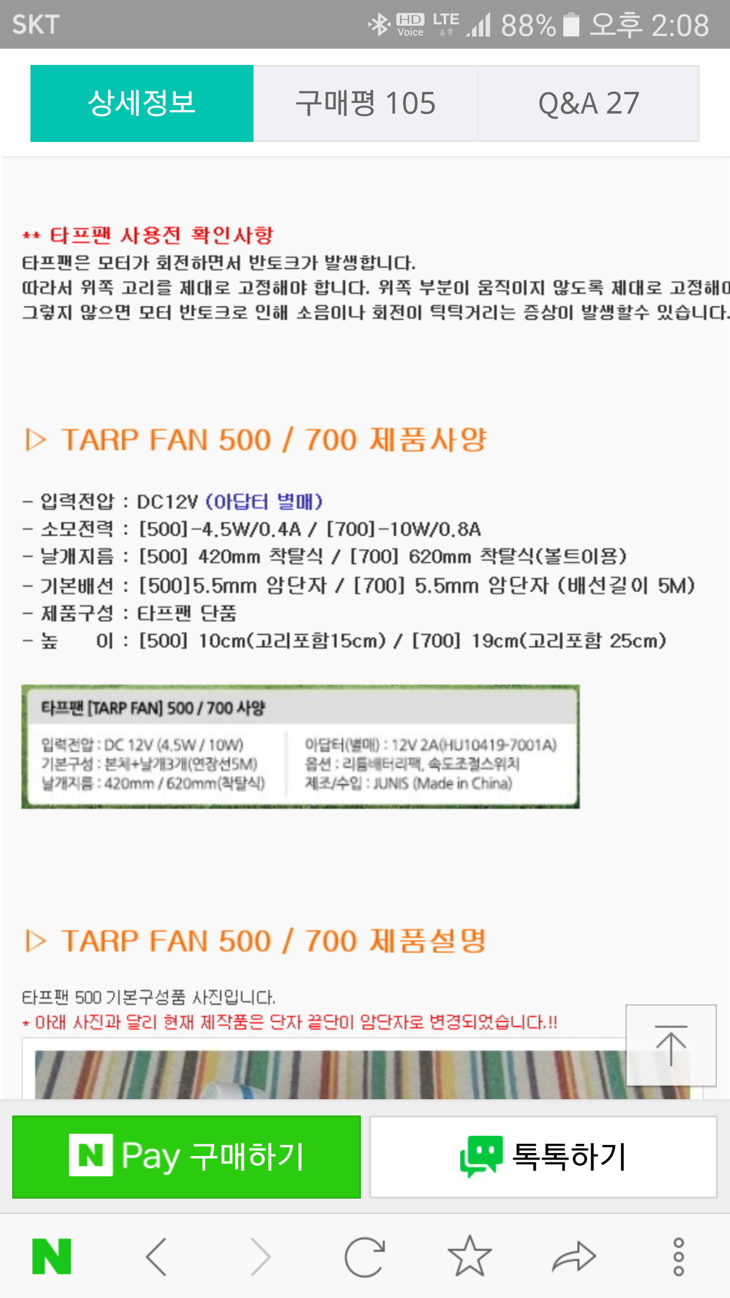 첨부 사진을 보면 타프팬 사용전력과 보조배터리