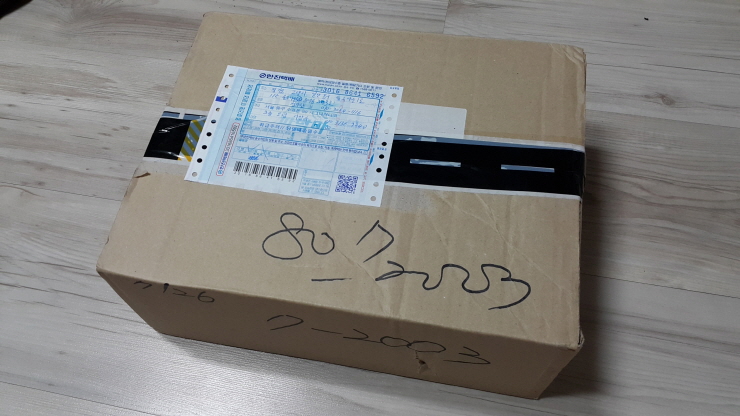 경비실에서 찾아온 택배상자입니다.. 사진을 작게 축소했더니.. 주소랑 전번은 안보이더라구요. ㅎㅎ