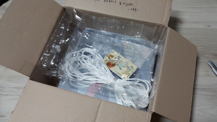 끈이 있습니다.. 편지에 적힌대로. 끈까지 챙겨주시는 세심함 감사합니다..