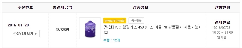 전 투버너용 이소가스 450짜리 12개 한박스 주문했습니다.