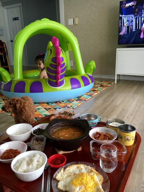 막둥이 전용으로 구입후 개시를 못했던 코슷코 미니풀장ㅋ 혼자 신났어요ㅋ