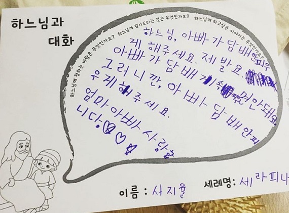 이건 이번 여름캠프때 큰딸래미가 기도하며 썼다는....그....뭐더라....