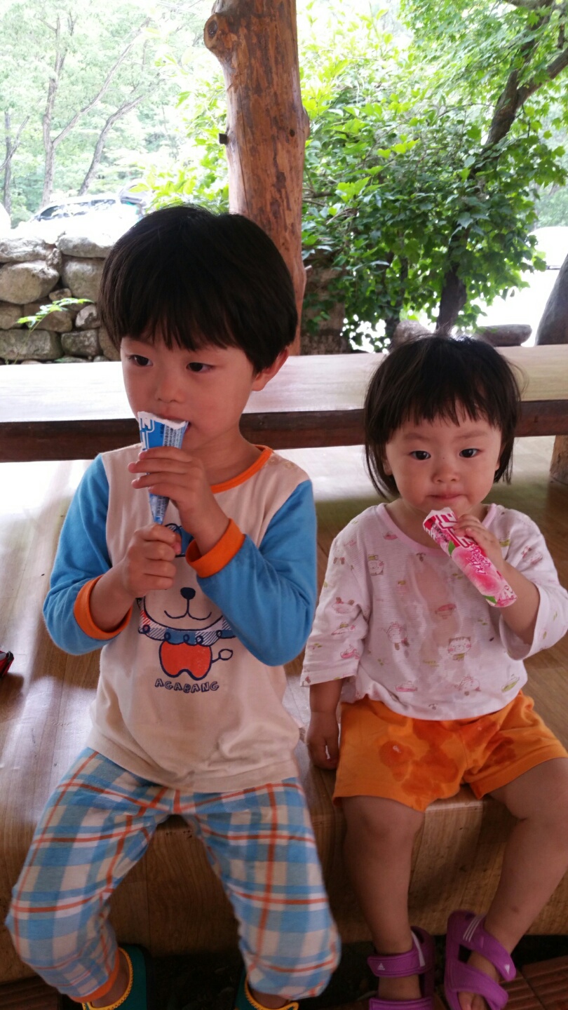 저희가 가기 전에 비가 많이 내려 계곡 물은 너무 맑았는데 돌맹이들이 많아서 아이들이 다칠까봐 걱정되더라구요.. 애들이 클때까지 바다 위주로 가야겠다고 생각되더라구요.