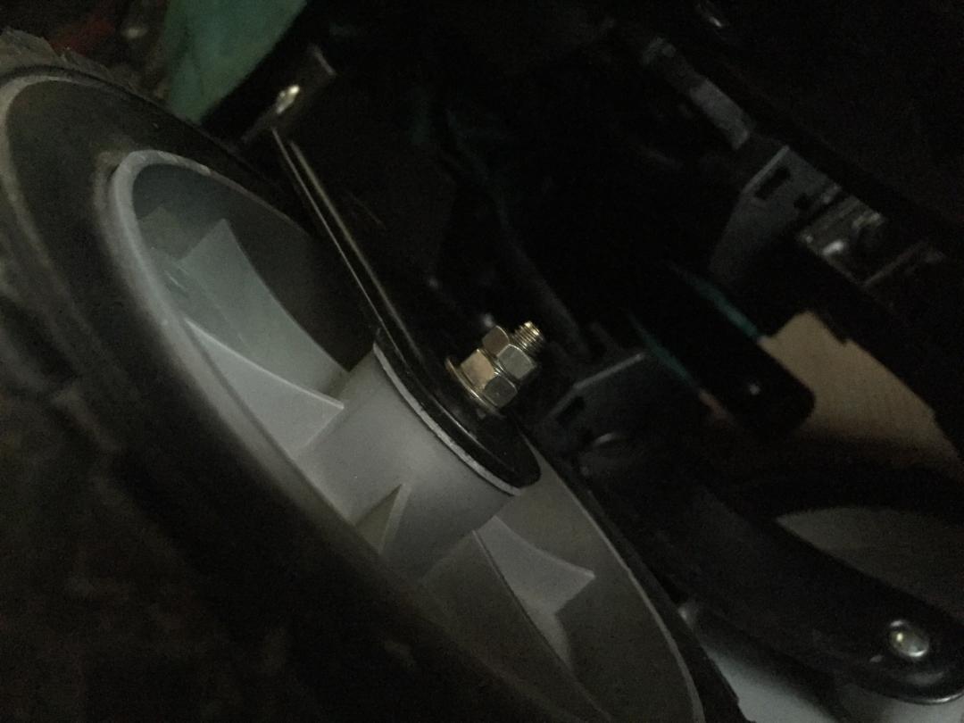 사실 바퀴 축 지지을 한쪽에 펀칭해서 고정하다보니 축이 빠져버린지라 근처 볼트집에 들러 축 외경은 동일하고 길이만 더 긴 볼트와 고정용 너트 두개 300원에 구매 본드대신 전기테잎으로 마무리 끝