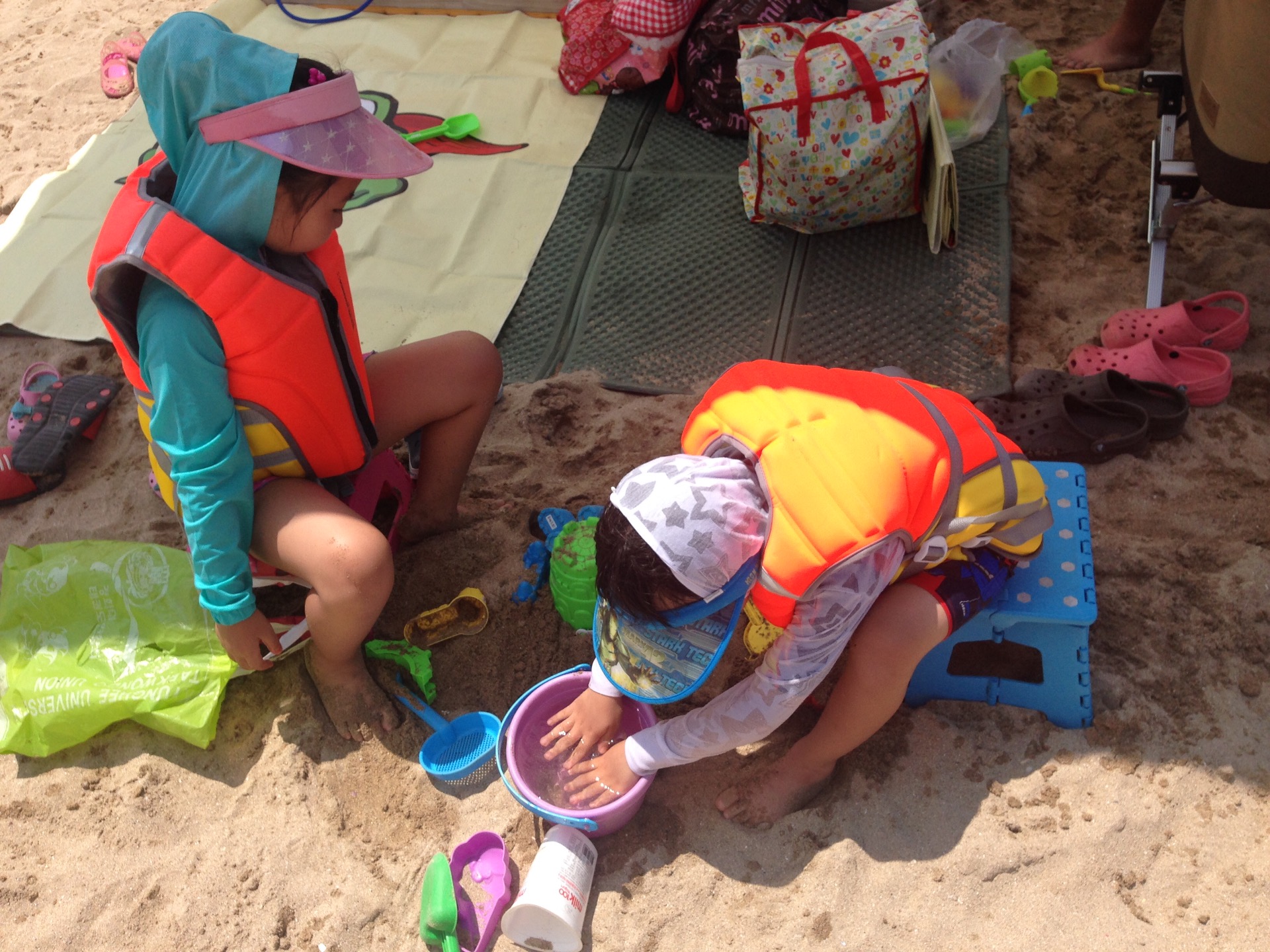 애들은 모래놀이에 보트로 파도타기까 물에서 나오질 않네요