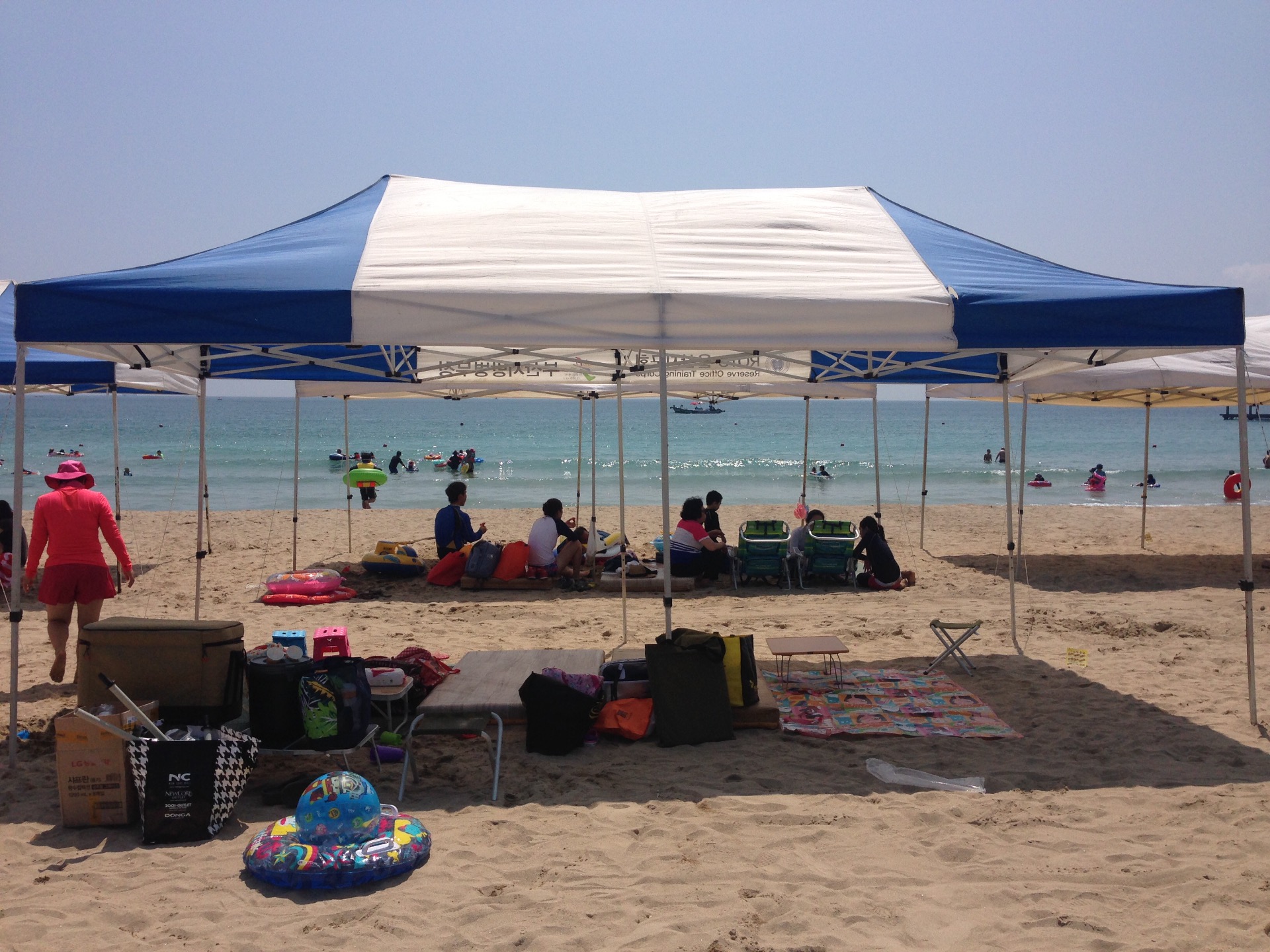 송정해수욕장인데 군인부부가 있어서 군전용 주차장에 케노피까정... 시원하고 좋네요