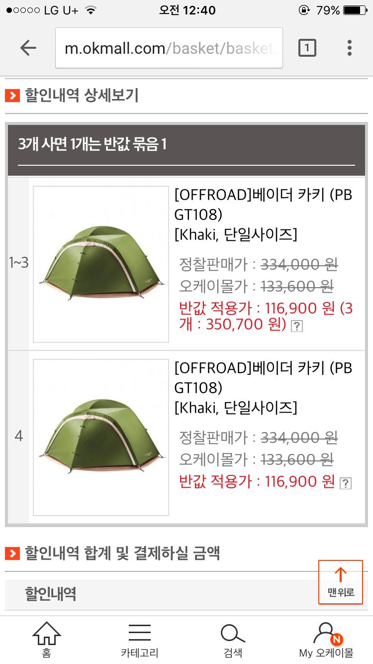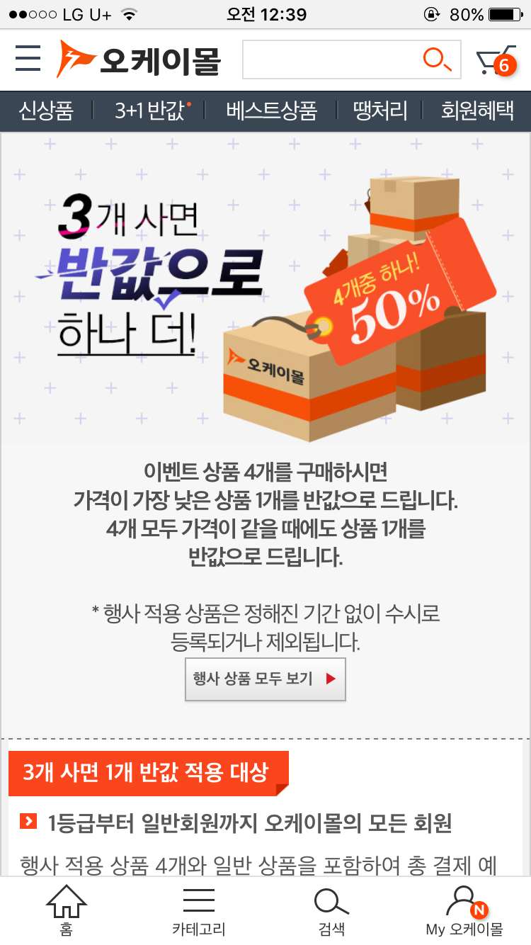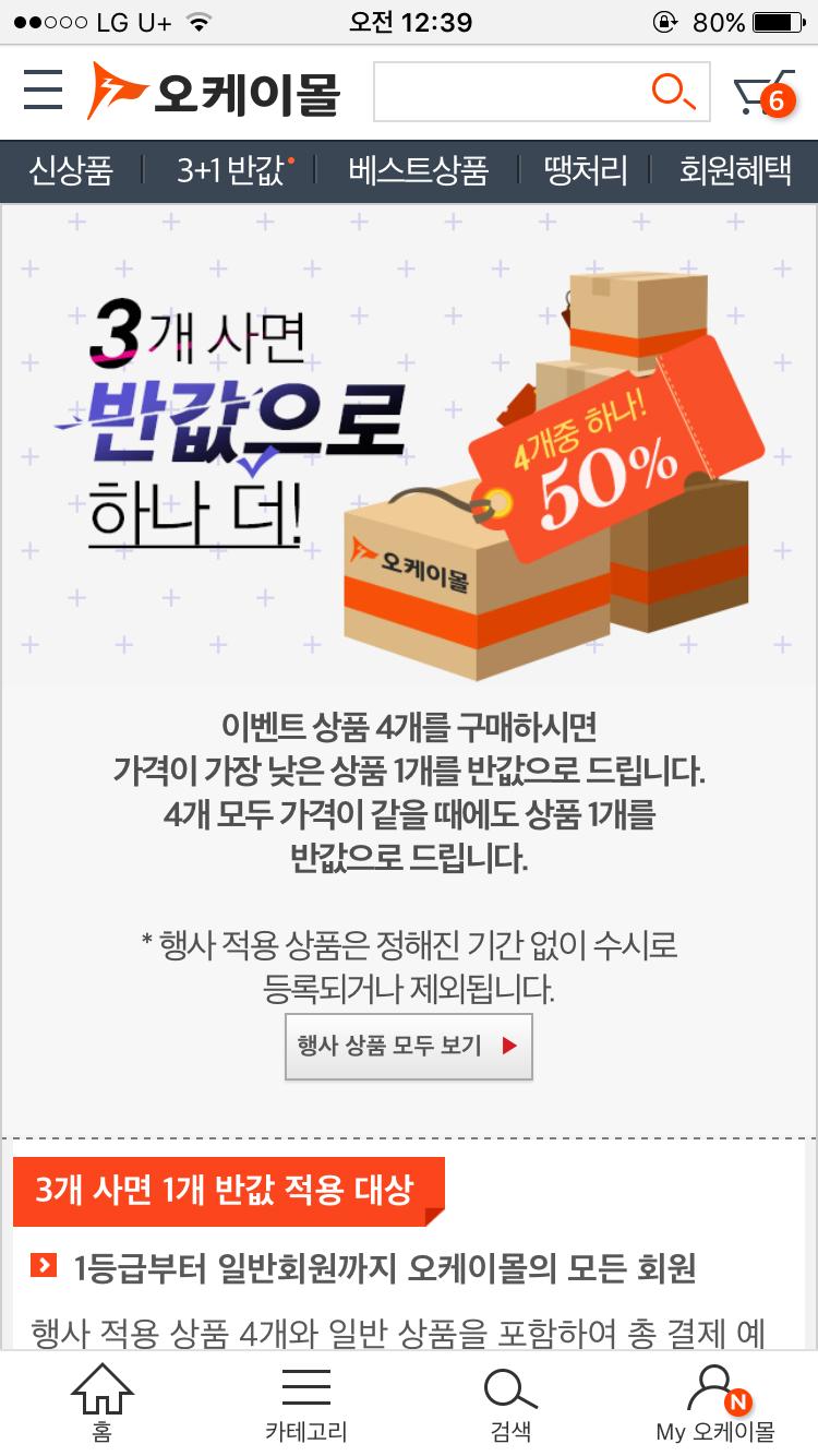 똑같은 상품 네개 넣어도 하난 반값으로 해서 그 할인금액 만큼 1/4 해서 네개가 똑같이 할인된 가격으로 자동 계산되네요.