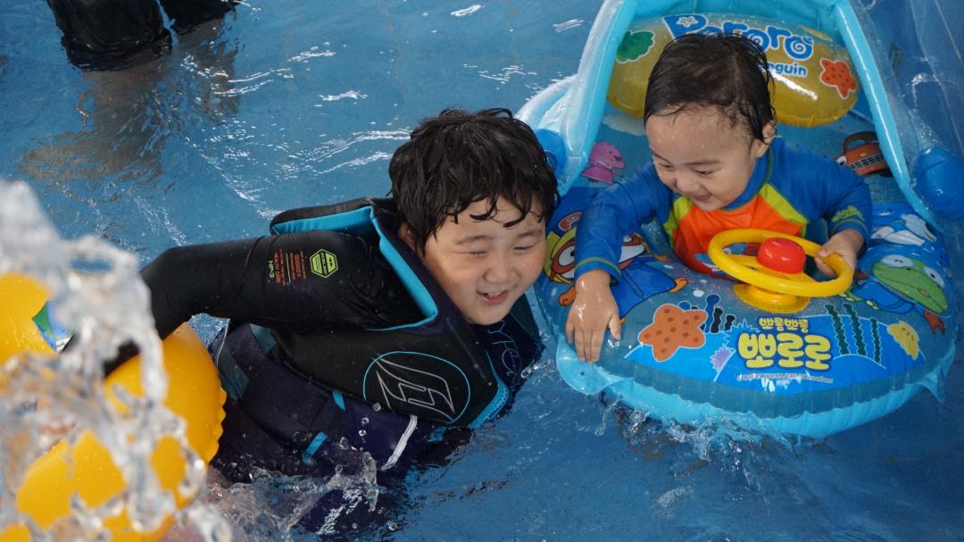담날 오전 찌는듯한 더위에 캠핑장에 부대시설인 수영장