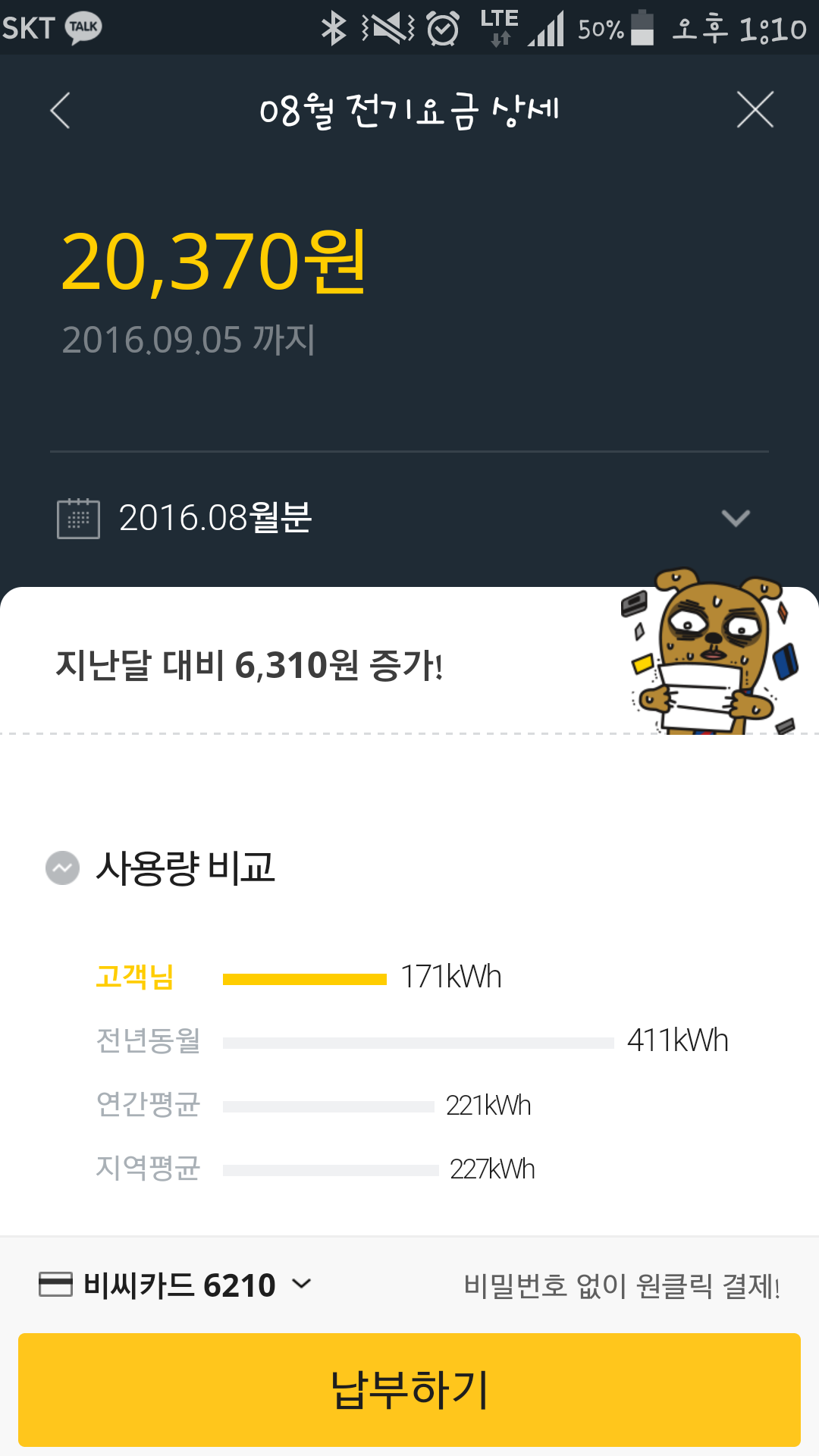 7월16부터 8월15일요금이 이번에 나온거에요ㅎㅎ