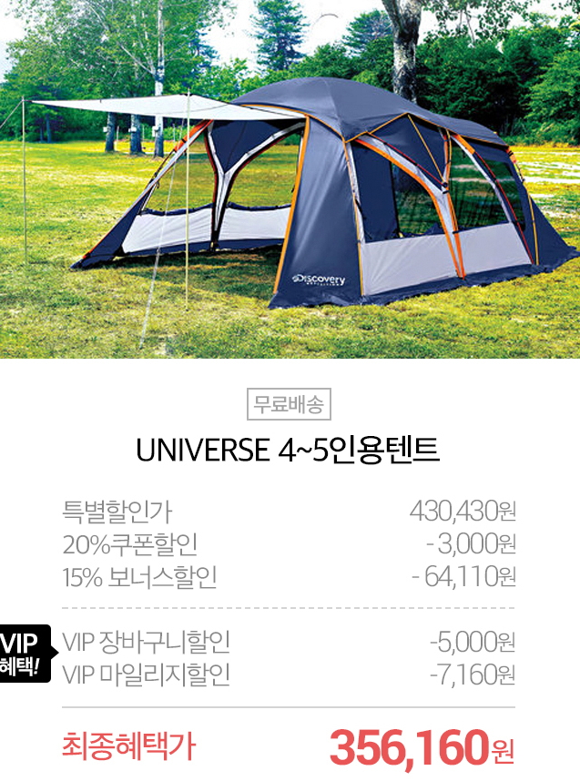 구성품 : 이너텐트1ea, 플라이1ea, 쉴드루프1ea, 알루미늄 폴 5ea, 캐노피용 폴 2ea, 스트링 6mmX3m 8ea,