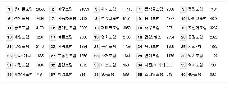 앞쪽에 강한 포럼들이 포진해 있고 주말 캠포는 비수기인지라 다시 아랫줄로 내려갈수도 있겠지만...