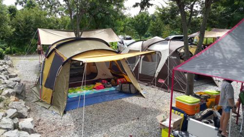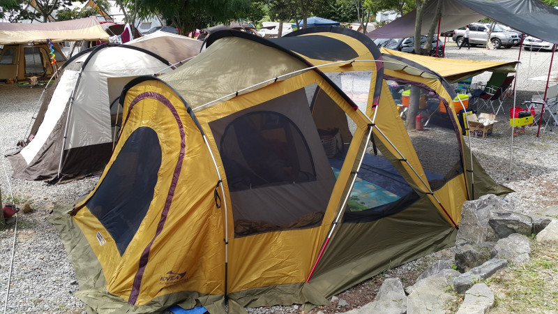 리빙쉘 2개를 저렇게 치고 앞에 타프를 치는 것도 괜찮네요.