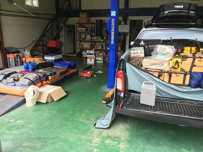 다음날 아침~!~!~! 어마어마한 양의 장비를 꾸리신...하늘꿈님에게서 사진 한장과 출발한다는 메시지가ㄷㄷㄷ