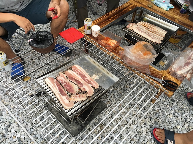마지막날 알게된거지만...사진 왼쪽에 위치한 빈이파파님의 브이그릴 한개가 완전 홀랑 다 타버린 이유가 여기있었네요;;; 집개와 가위를...하늘꿈님이 들고계셨으니;;;;;;;;;;;; 고기담당부터가 문제가 많았군요ㅋㅋㅋ