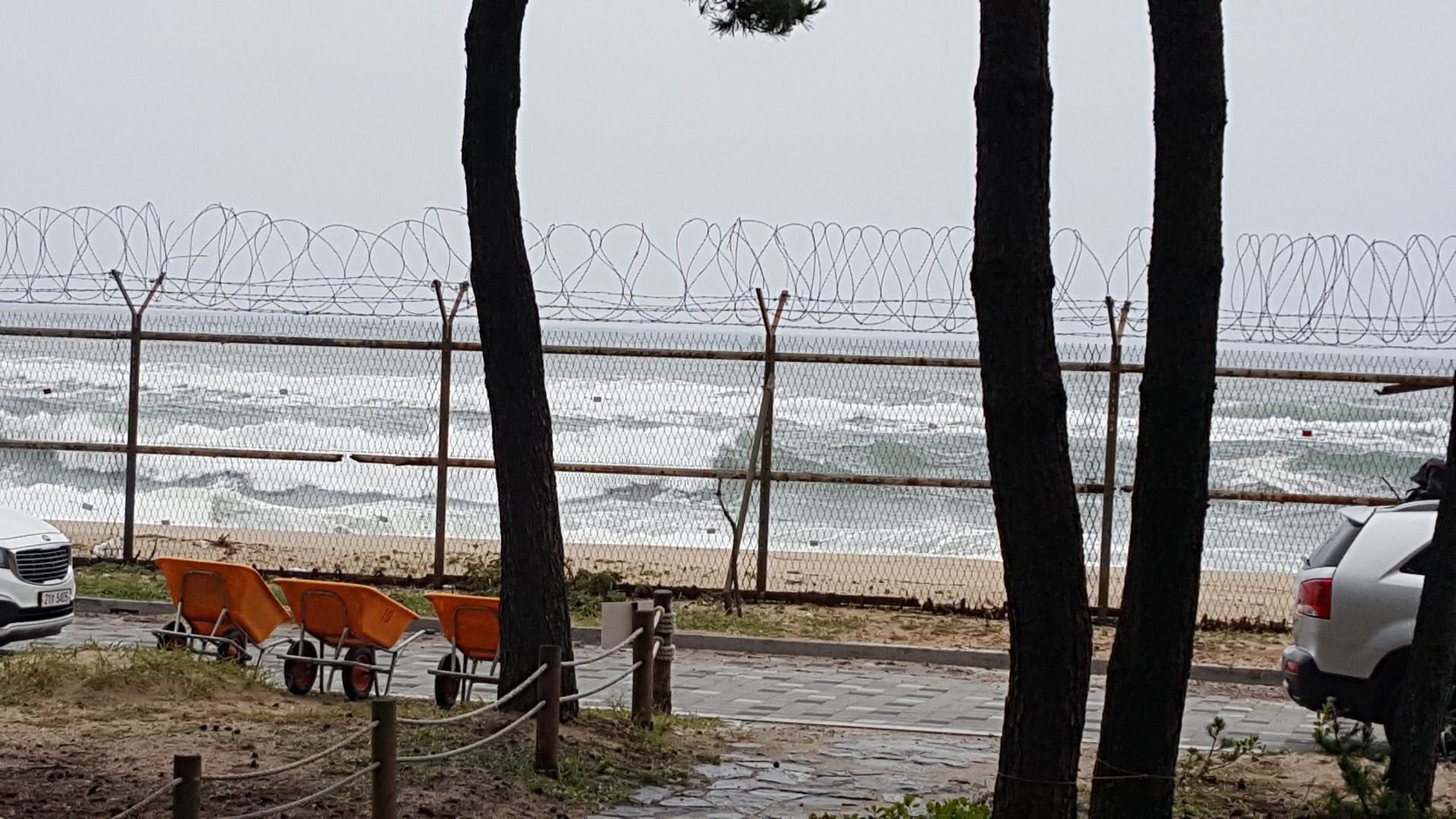 만만히 본 첫 바닷가 캠핑에 하늘이 진노하셨는지 해일까지 밀려와 바로 앞 주차장을 덮치며 옆사이트 애완견이 춤을 춥니다.