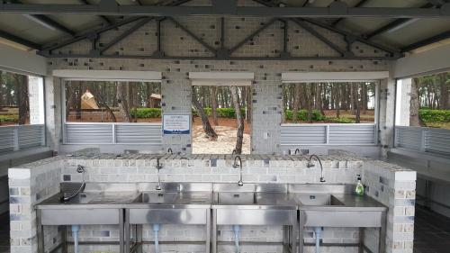 화장실,개수대며 최신시설에 감탄을 하던중 비가 내리기시작합니다.