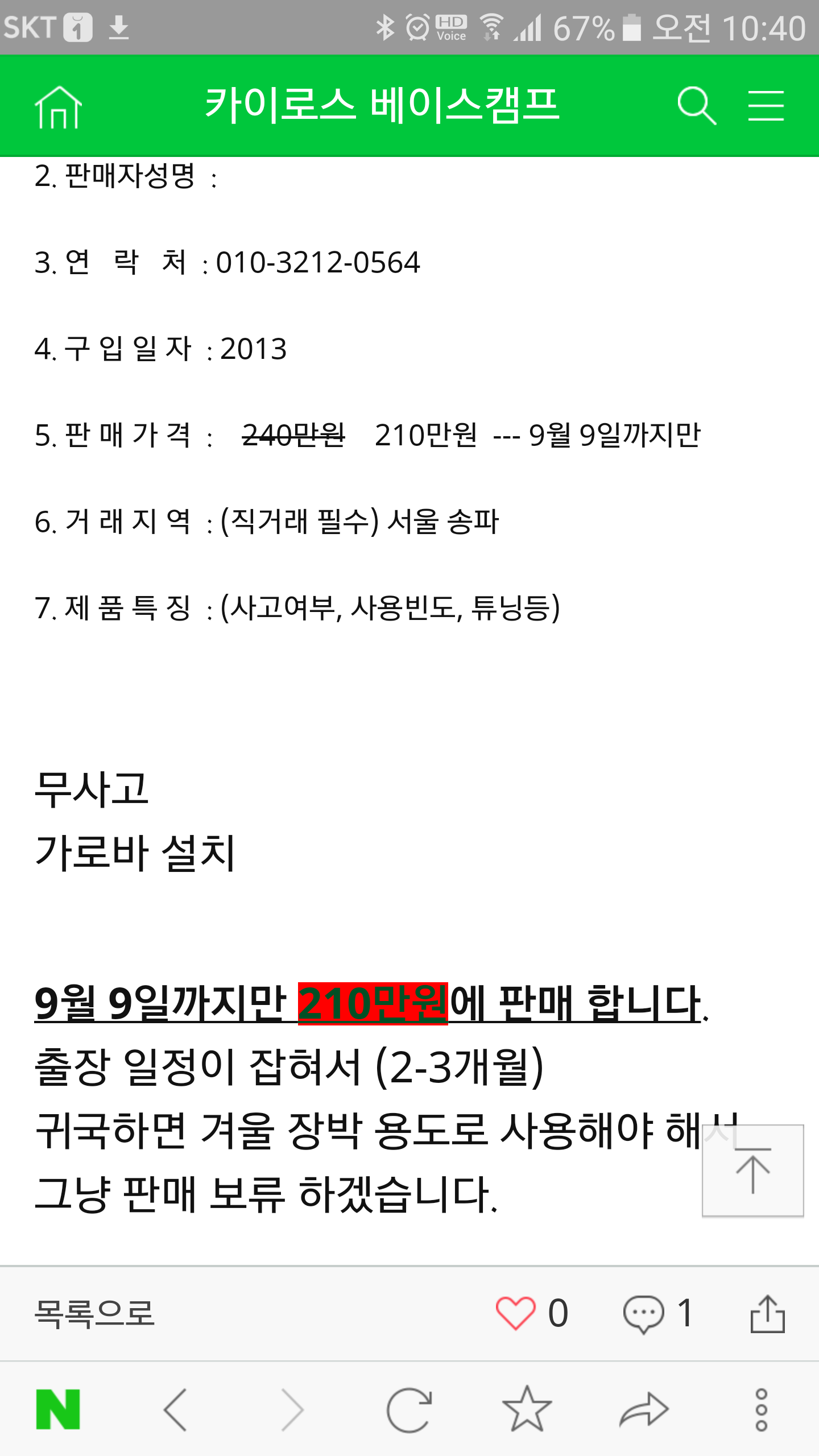 * 제가 판매하는 매물이 아니라 카페에