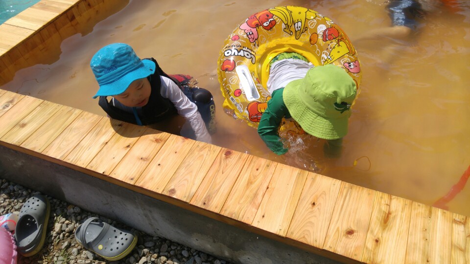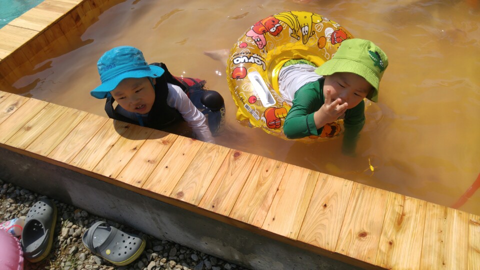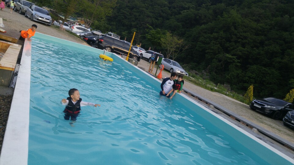 달콤한 캠핑장을 선택한 이유네요. 수영장 옆에 캠장님이 만드신 온탕~ 아무리 여름이라도 찬물에서 놀다 보면 애들이 추워 하기 마련인데 온탕을 만들어 둬서 애들이 아주 좋아라 하더군요.