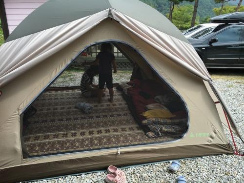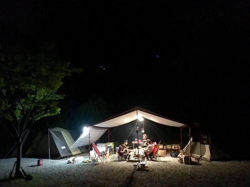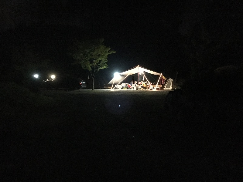 아래에 사진상 저희 타프 왼쪽에 SM5 차량과 그 옆으로 텐트불빛이 보이실거에요...