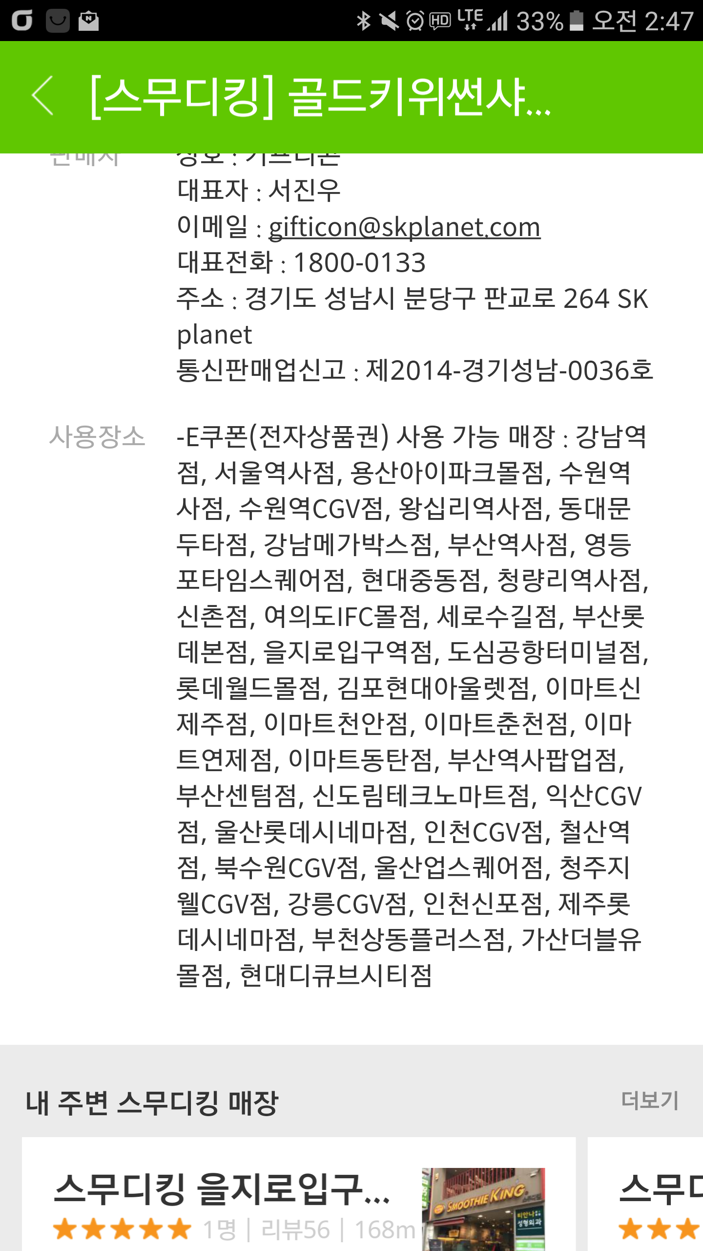 스무디킹 스무디 골드키위선샤인 s 사이즈 2잔인데 오늘 까지이네요 ㅠ
