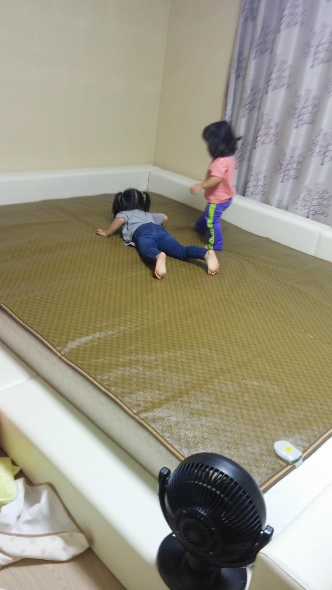깔자마자 애들 뛰고 뒹굴고 ㅎㅎ