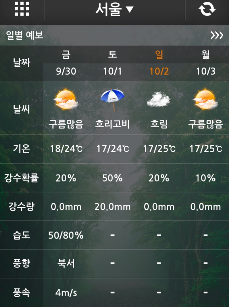 PS 주말 연휴 첫날 비가 살짝 올듯합니다