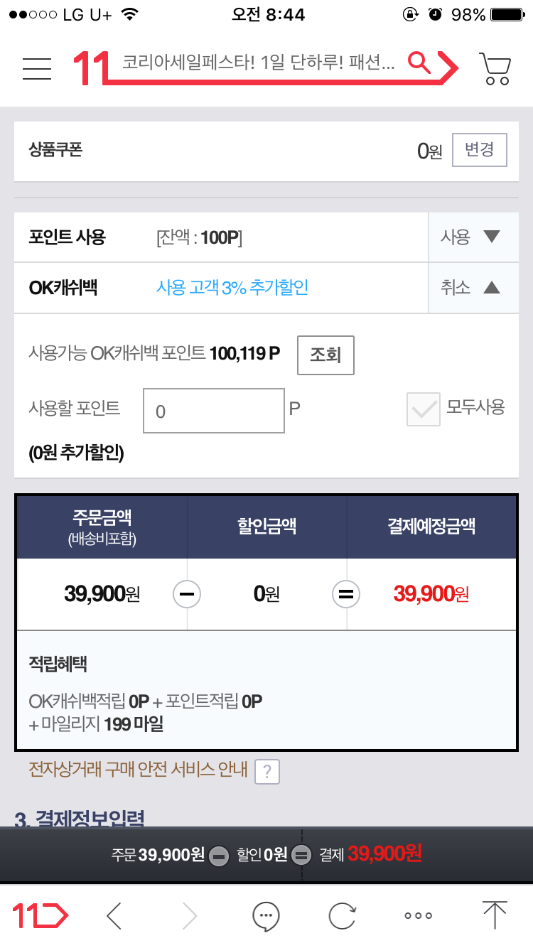 혹시 되나 와이프 아이디로 로그인 해보니 ok캐쉬백이 무려 10만점정도 있습니다. ㄷㄷ
