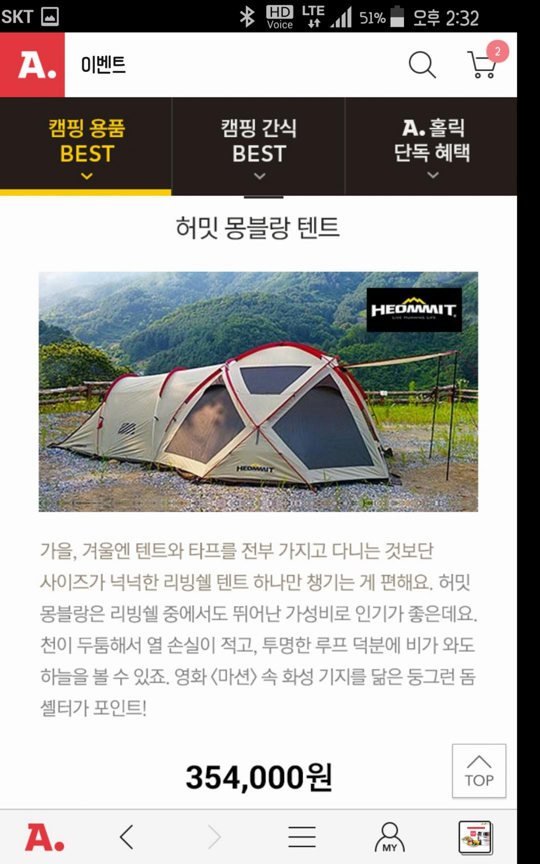 지금 허밋 몽블랑 텐트가 354,000입니다.