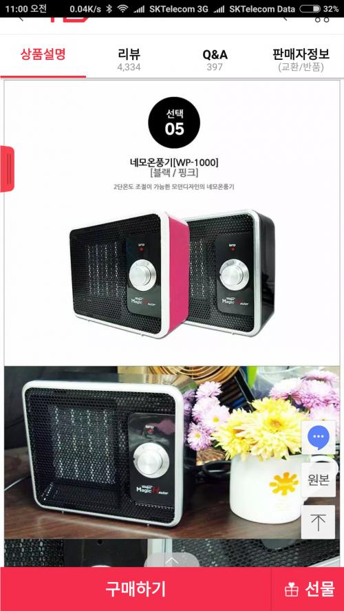 앗 제가 쓰는 제품이네요. 의외로 성능이 괜찮습니다. 잠깐만 틀어놔도 이너룸 후끈해져요~ | ||