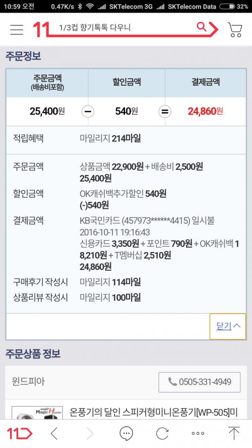 오케이캐쉬백 18000점정도 제외하고 최종 결제금액 3350원~