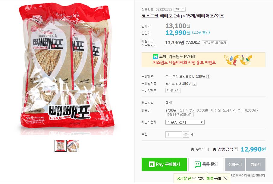 엊그제 코스트코에서 안지기가 먹고 싶어하는 빼빼포??라는 것을 샀습니다.