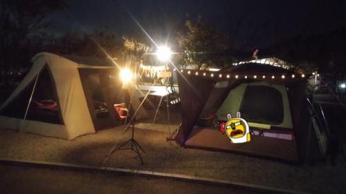 뒷쪽 메쉬망이 바람에 날려 다시 텐트안으로 말려들어가 있더라구요...그래서 다시 올려두려고 들어갔는데 아뿔싸;;; 출입문 원단이랑 난로랑 키스하고 있네요 ㅋㅋㅋ