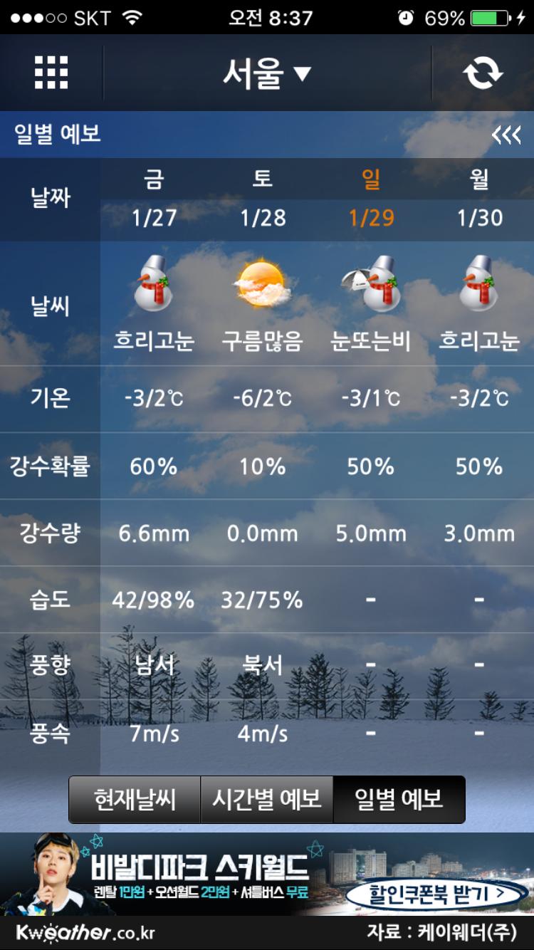 PS] 토요일, 일요일, 월요일 전국적인 한파속 눈과 비가 예보되었습니다. 안전 운전하세요~~~