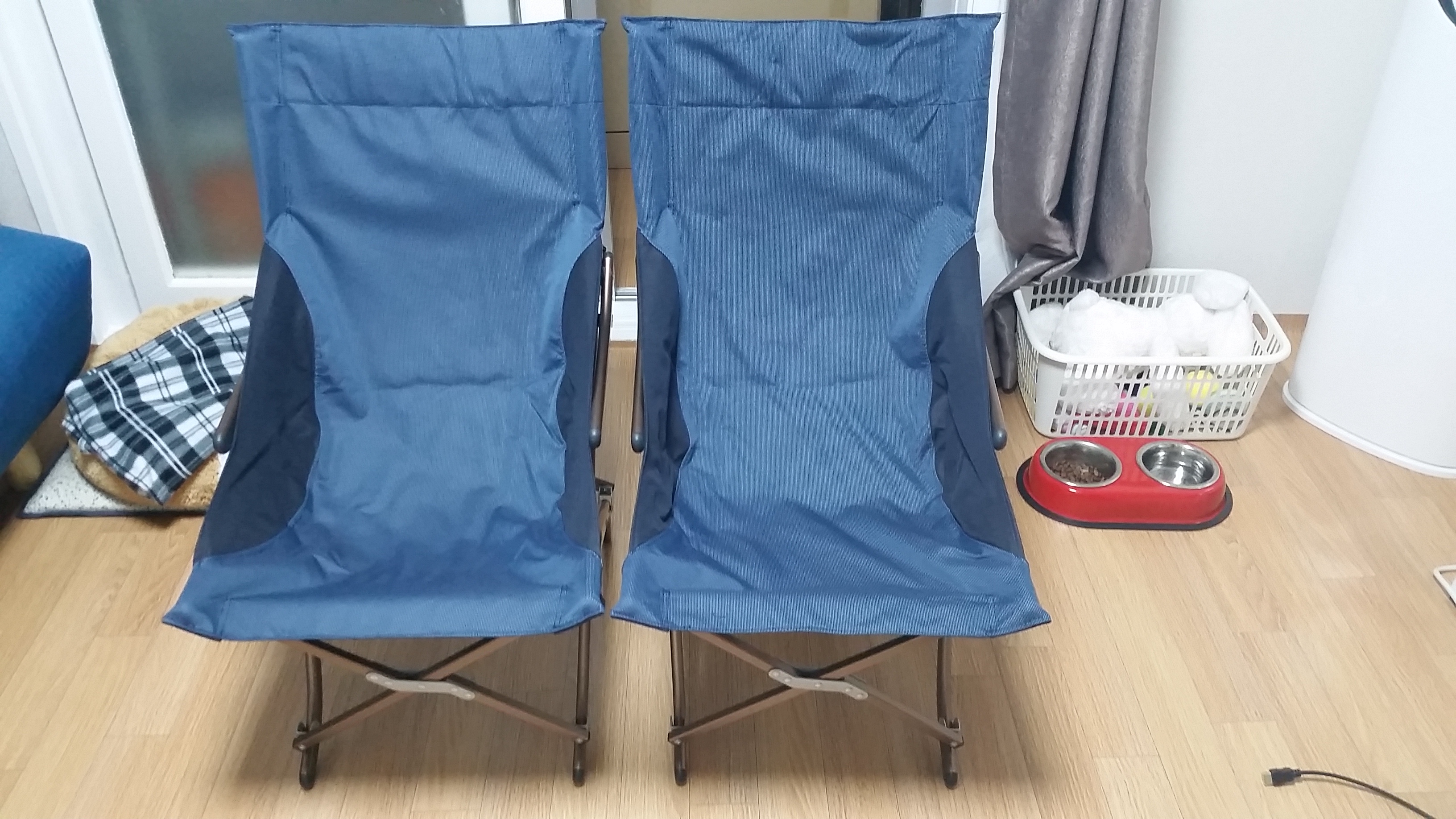 왼쪽이 현재 주력인 콜맨 릴렉스, 오른쪽은 캠핑 입문하면서 셋트로 딸려온 버팔로 와이드체어 입니다.