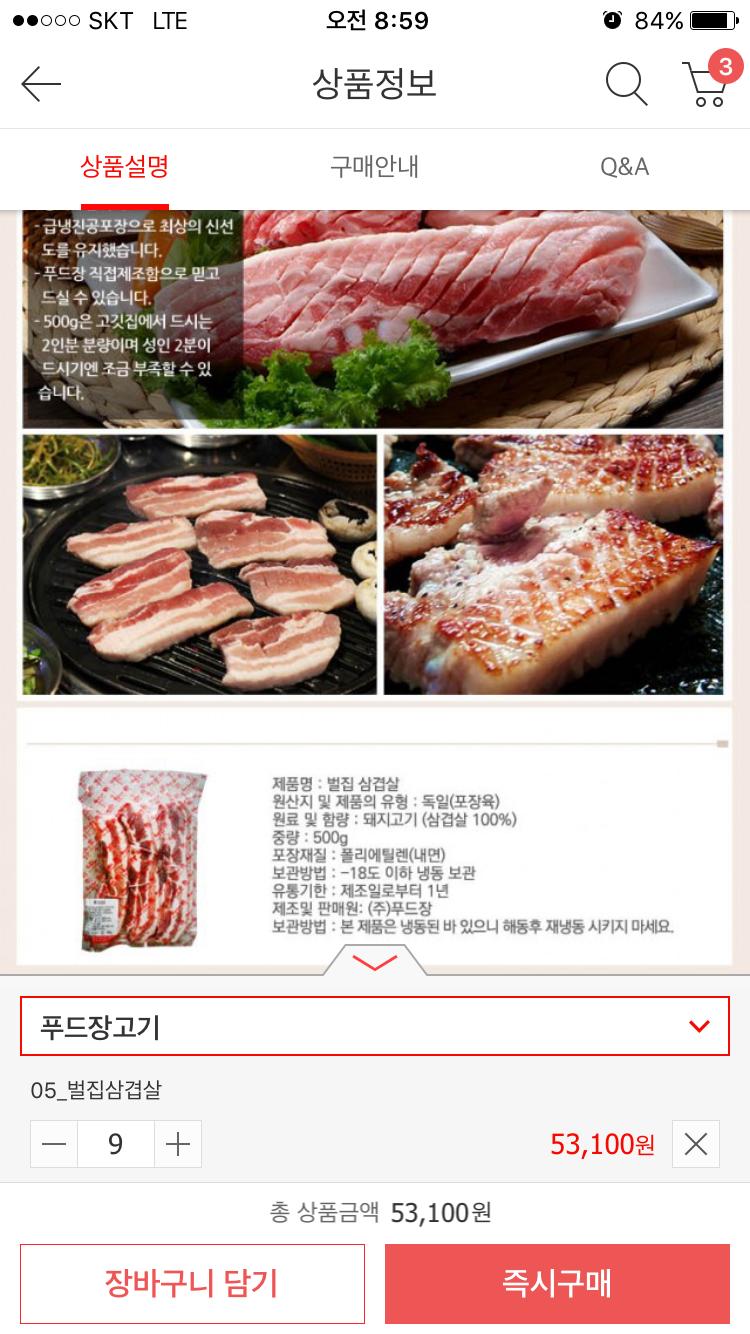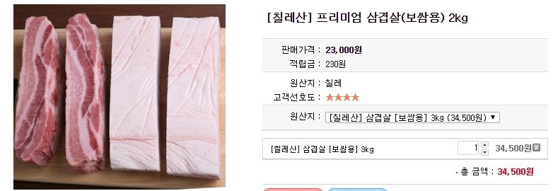 항상 애용하는 수입고기몰에서 칠레산삼겹살 3키로 또 주문했습니다.ㅋㅋ